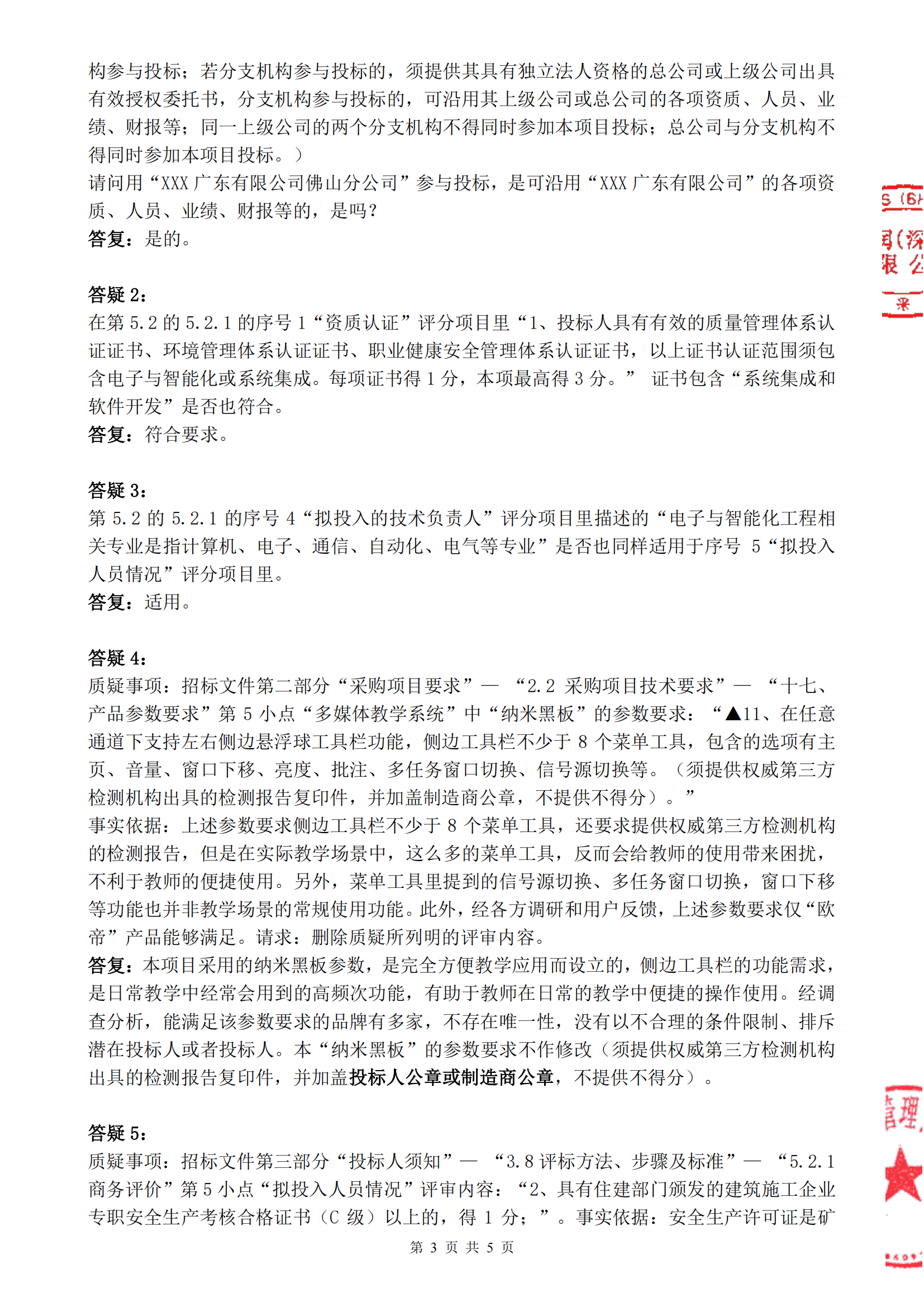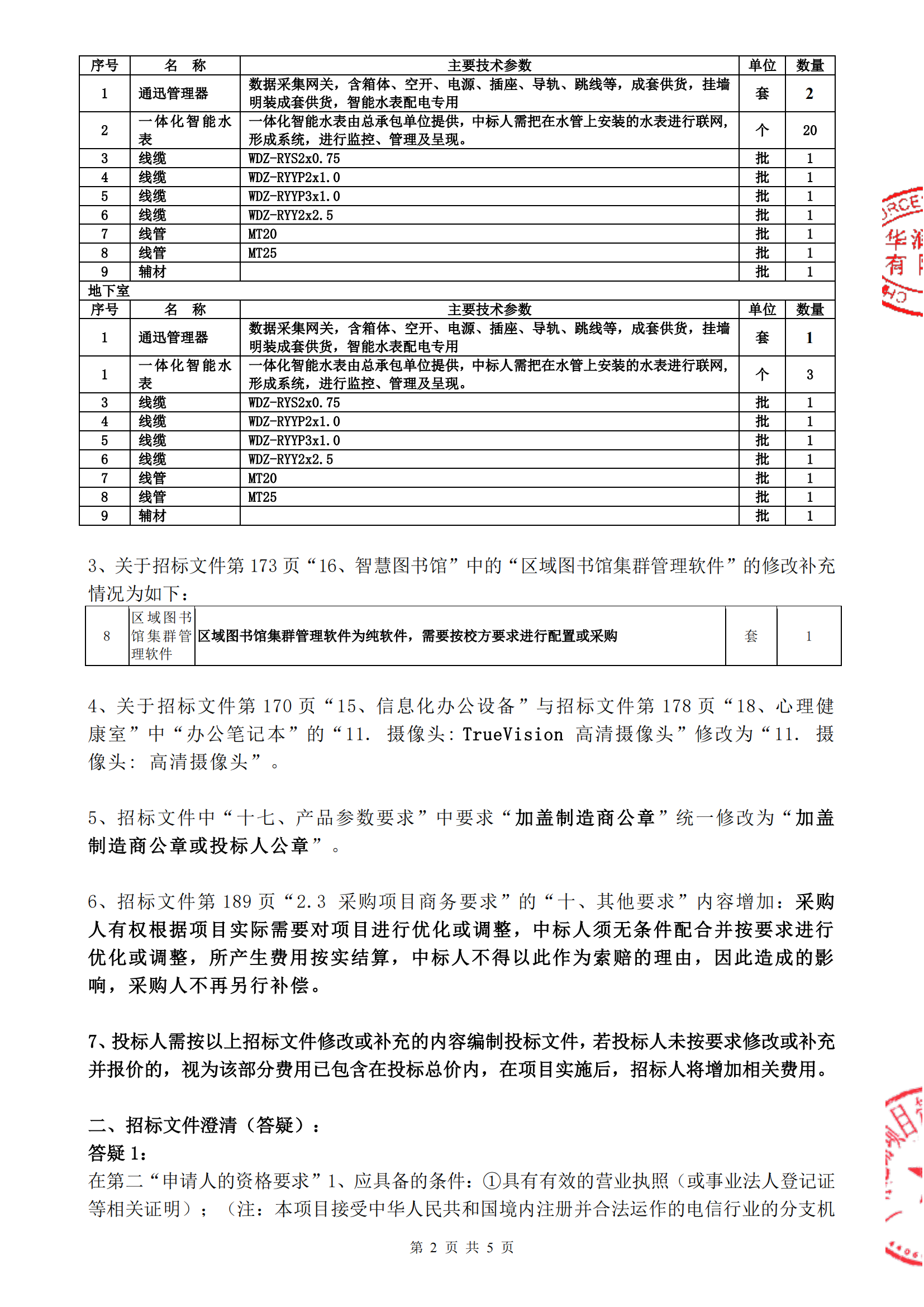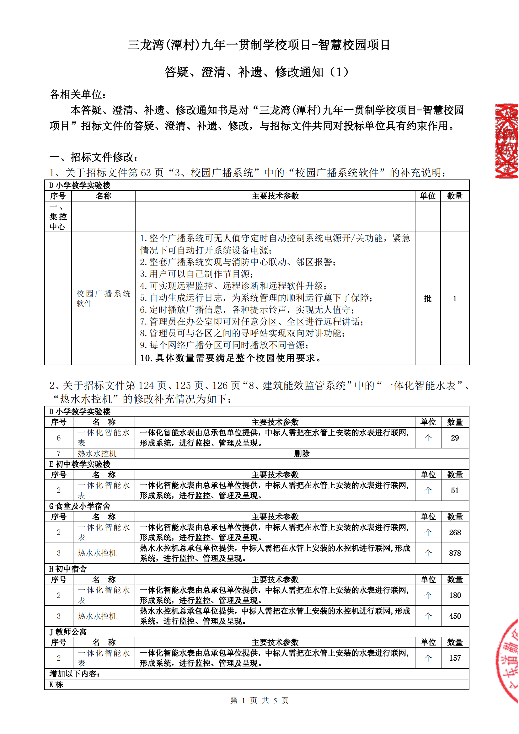三龙湾(潭村)九年一贯制学校项目-智慧校园项目答疑、澄清、补遗、修改通知(1)