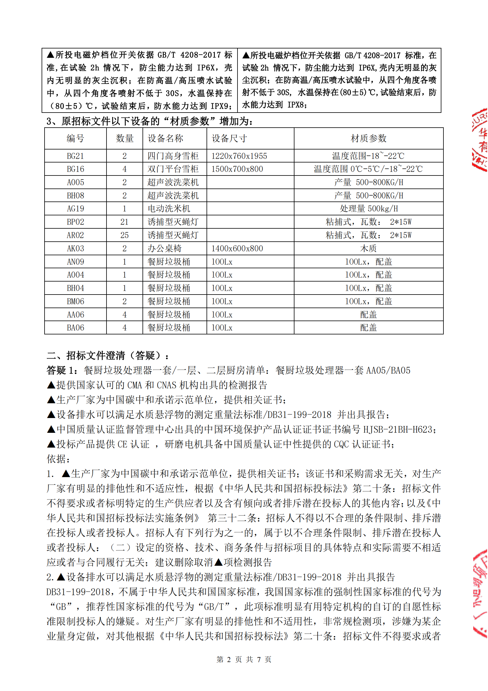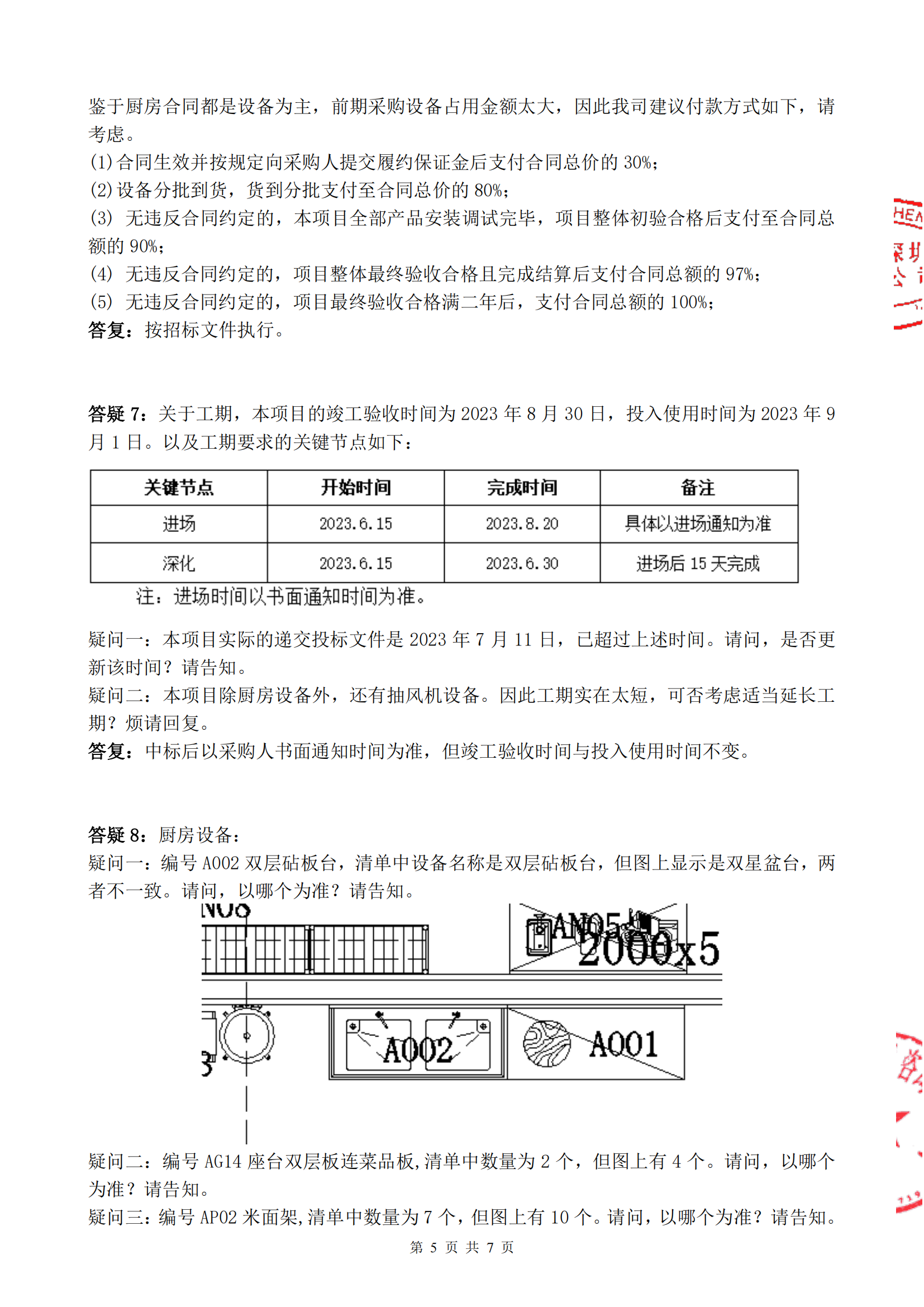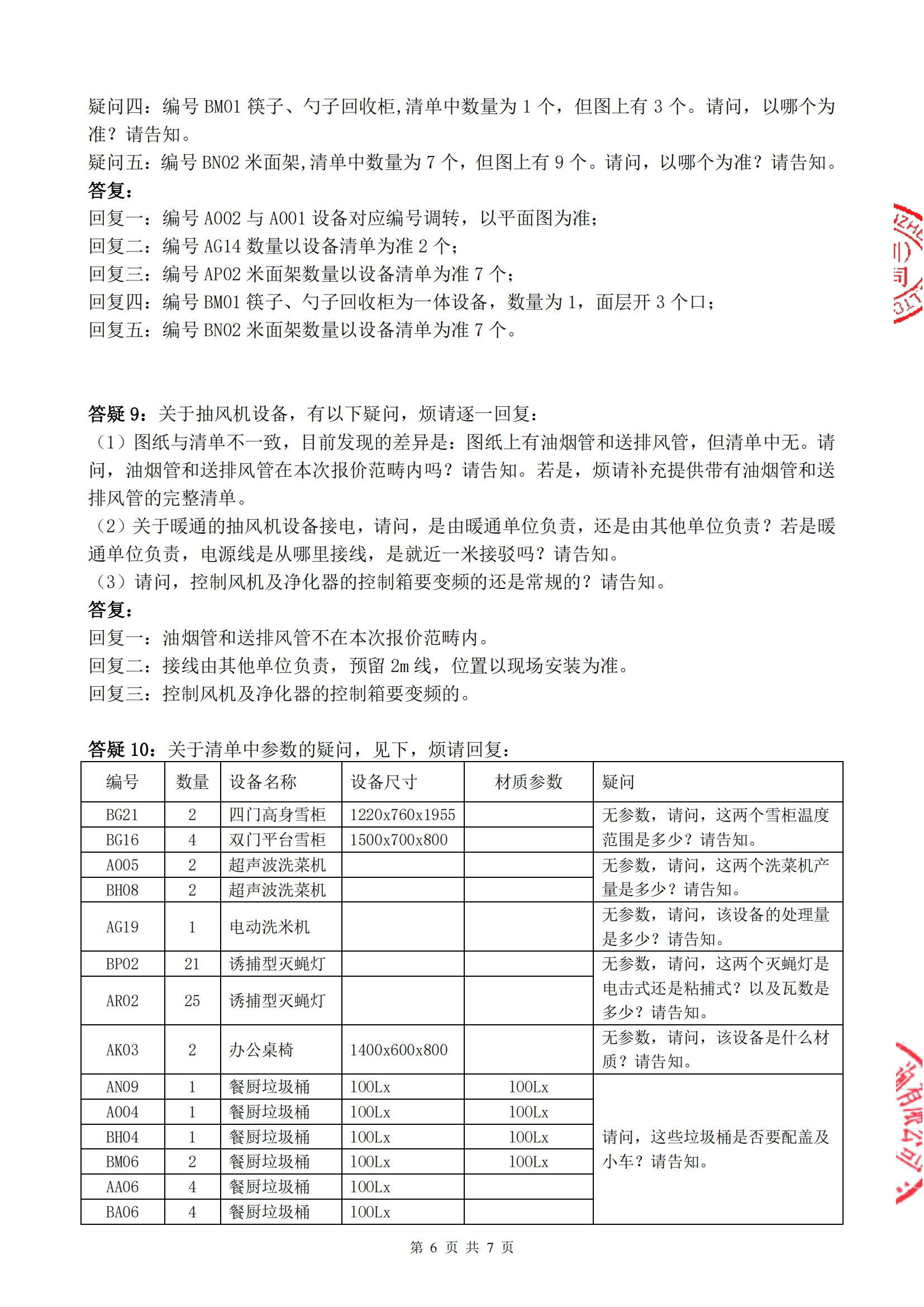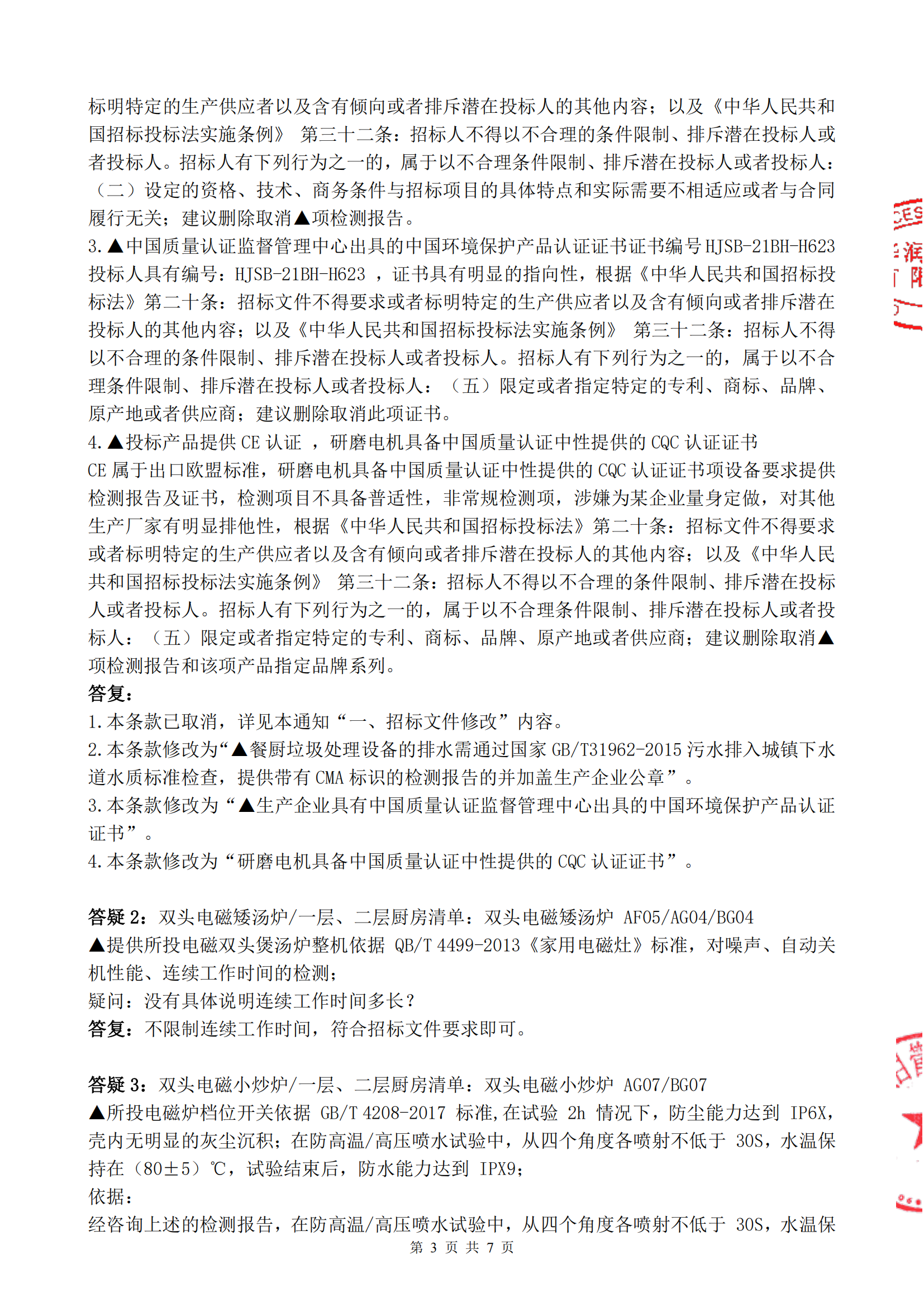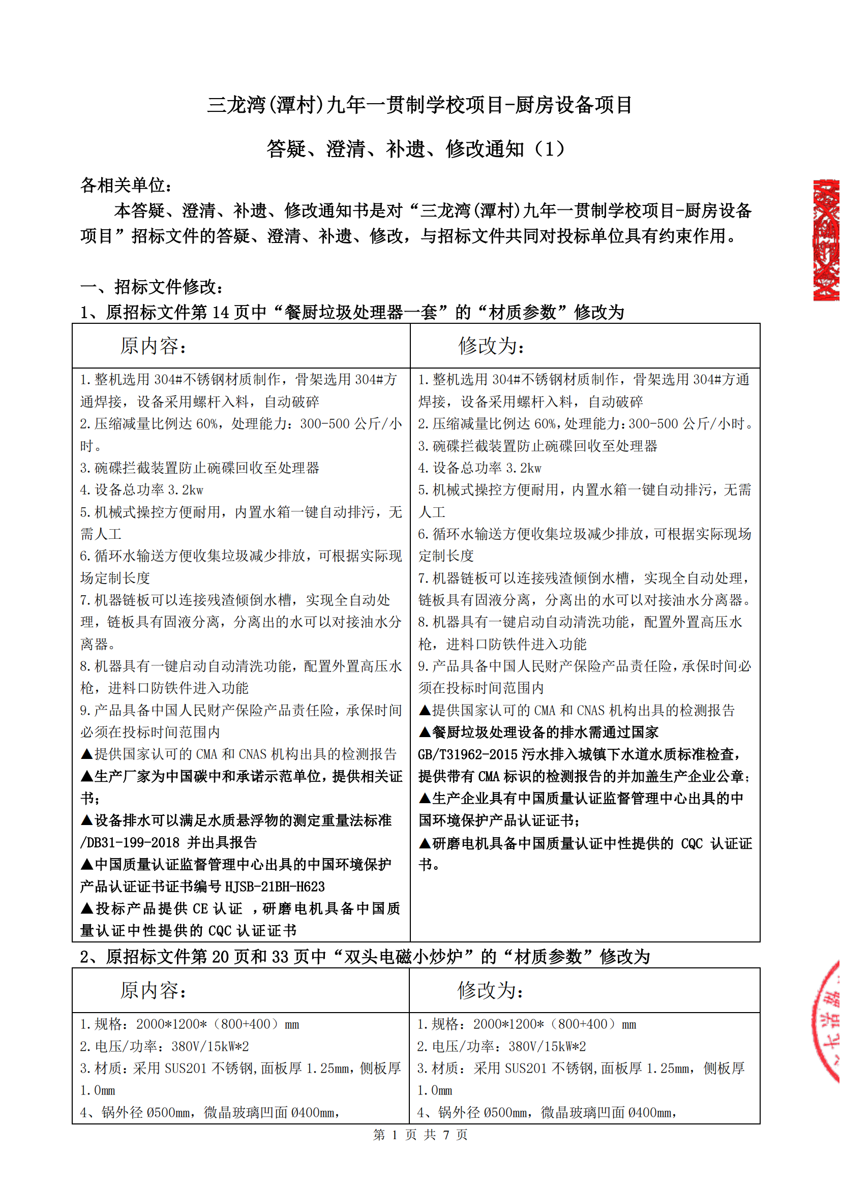 三龙湾(潭村)九年一贯制学校项目-厨房设备项目答疑、澄清、补遗、修改通知(1)